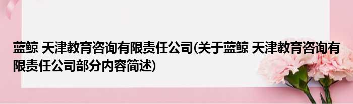 蓝鲸 天津教育咨询有限责任公司(关于蓝鲸 天津教育咨询有限责任公司部分内容简述)