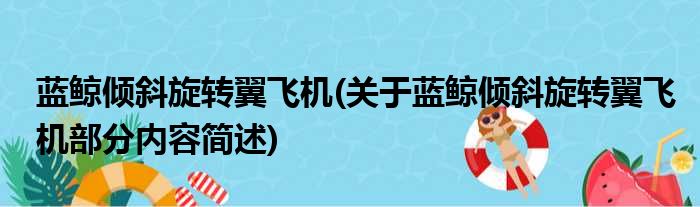 蓝鲸倾斜旋转翼飞机(关于蓝鲸倾斜旋转翼飞机部分内容简述)