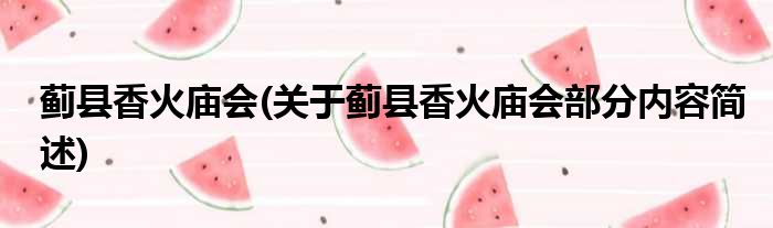蓟县香火庙会(关于蓟县香火庙会部分内容简述)