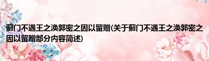 蓟门不遇王之涣郭密之因以留赠(关于蓟门不遇王之涣郭密之因以留赠部分内容简述)
