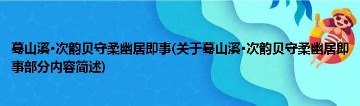 蓦山溪·次韵贝守柔幽居即事(关于蓦山溪·次韵贝守柔幽居即事部分内容简述)