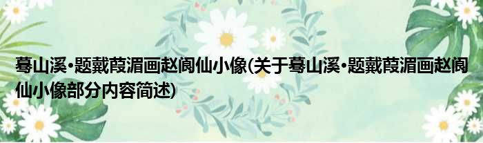 蓦山溪·题戴葭湄画赵阆仙小像(关于蓦山溪·题戴葭湄画赵阆仙小像部分内容简述)