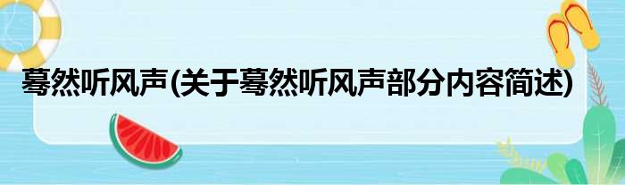 蓦然听风声(关于蓦然听风声部分内容简述)
