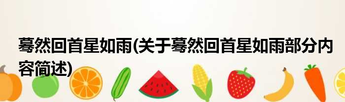 蓦然回首星如雨(关于蓦然回首星如雨部分内容简述)