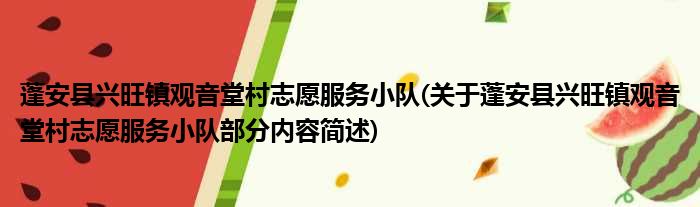 蓬安县兴旺镇观音堂村志愿服务小队(关于蓬安县兴旺镇观音堂村志愿服务小队部分内容简述)