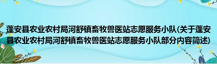 蓬安县农业农村局河舒镇畜牧兽医站志愿服务小队(关于蓬安县农业农村局河舒镇畜牧兽医站志愿服务小队部分内容简述)