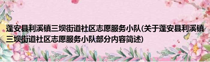 蓬安县利溪镇三坝街道社区志愿服务小队(关于蓬安县利溪镇三坝街道社区志愿服务小队部分内容简述)