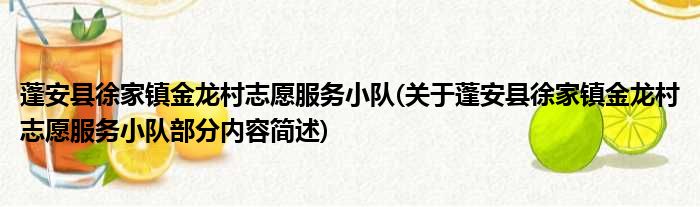 蓬安县徐家镇金龙村志愿服务小队(关于蓬安县徐家镇金龙村志愿服务小队部分内容简述)