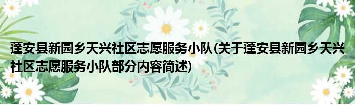 蓬安县新园乡天兴社区志愿服务小队(关于蓬安县新园乡天兴社区志愿服务小队部分内容简述)