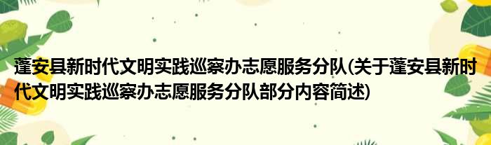 蓬安县新时代文明实践巡察办志愿服务分队(关于蓬安县新时代文明实践巡察办志愿服务分队部分内容简述)
