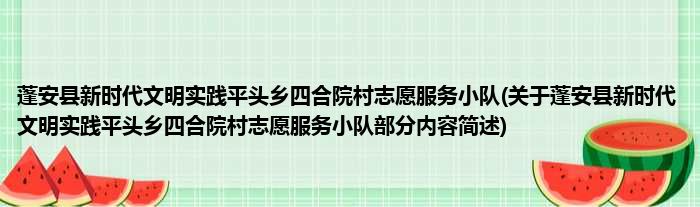 蓬安县新时代文明实践平头乡四合院村志愿服务小队(关于蓬安县新时代文明实践平头乡四合院村志愿服务小队部分内容简述)