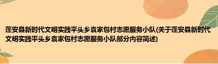 蓬安县新时代文明实践平头乡袁家包村志愿服务小队(关于蓬安县新时代文明实践平头乡袁家包村志愿服务小队部分内容简述)