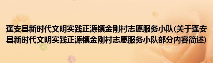 蓬安县新时代文明实践正源镇金刚村志愿服务小队(关于蓬安县新时代文明实践正源镇金刚村志愿服务小队部分内容简述)