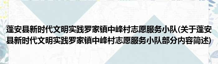蓬安县新时代文明实践罗家镇中峰村志愿服务小队(关于蓬安县新时代文明实践罗家镇中峰村志愿服务小队部分内容简述)