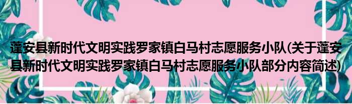 蓬安县新时代文明实践罗家镇白马村志愿服务小队(关于蓬安县新时代文明实践罗家镇白马村志愿服务小队部分内容简述)