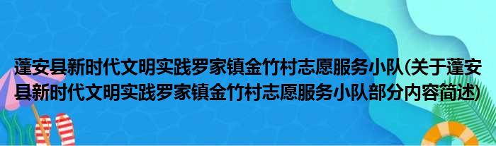 蓬安县新时代文明实践罗家镇金竹村志愿服务小队(关于蓬安县新时代文明实践罗家镇金竹村志愿服务小队部分内容简述)