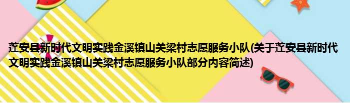 蓬安县新时代文明实践金溪镇山关梁村志愿服务小队(关于蓬安县新时代文明实践金溪镇山关梁村志愿服务小队部分内容简述)