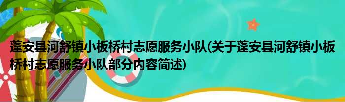蓬安县河舒镇小板桥村志愿服务小队(关于蓬安县河舒镇小板桥村志愿服务小队部分内容简述)