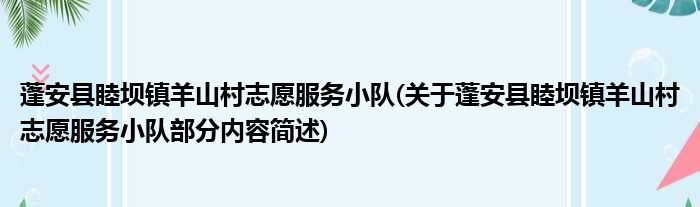 蓬安县睦坝镇羊山村志愿服务小队(关于蓬安县睦坝镇羊山村志愿服务小队部分内容简述)