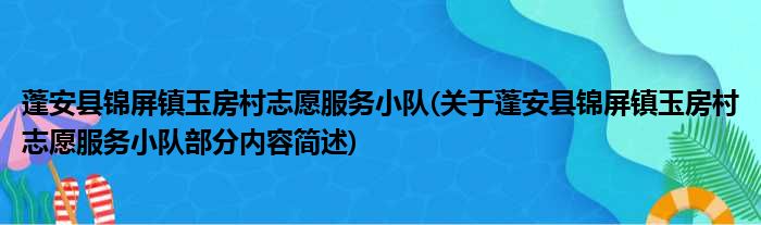 蓬安县锦屏镇玉房村志愿服务小队(关于蓬安县锦屏镇玉房村志愿服务小队部分内容简述)