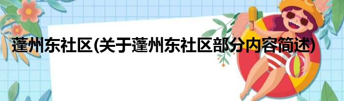 蓬州东社区(关于蓬州东社区部分内容简述)