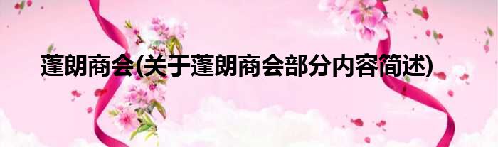 蓬朗商会(关于蓬朗商会部分内容简述)