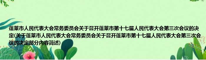 蓬莱市人民代表大会常务委员会关于召开蓬莱市第十七届人民代表大会第三次会议的决定(关于蓬莱市人民代表大会常务委员会关于召开蓬莱市第十七届人民代表大会第三次会议的决定部分内容简述)