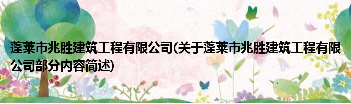 蓬莱市兆胜建筑工程有限公司(关于蓬莱市兆胜建筑工程有限公司部分内容简述)