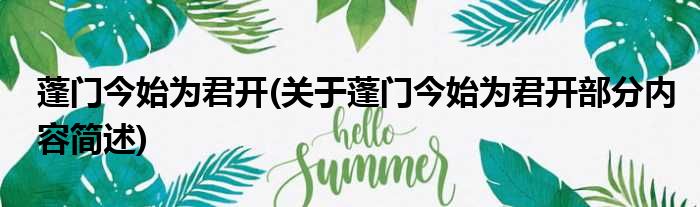 蓬门今始为君开(关于蓬门今始为君开部分内容简述)
