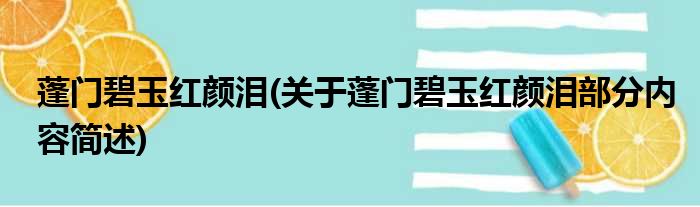 蓬门碧玉红颜泪(关于蓬门碧玉红颜泪部分内容简述)