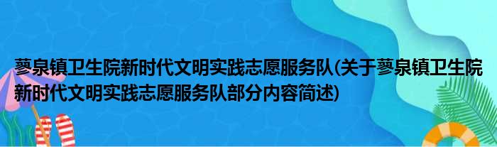 蓼泉镇卫生院新时代文明实践志愿服务队(关于蓼泉镇卫生院新时代文明实践志愿服务队部分内容简述)