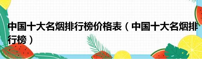 中国十大名烟排行榜价格表(中国十大名烟排行榜)
