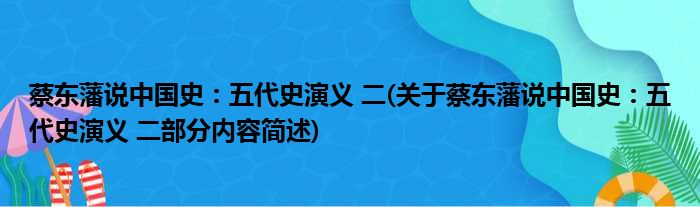 导读 大家好,今天小方来说说一篇关于蔡东藩说中国史:五代史演义 二,关于蔡东藩说中国史:五代史演义 二部分内容简述的文章,那么现在就为大