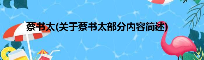 大家好,今天小方来说说一篇关于蔡书太,关于蔡书太部分内容简述的文章,那么现在就为大家来简单介绍下,希望对各位小伙伴们有所帮助。