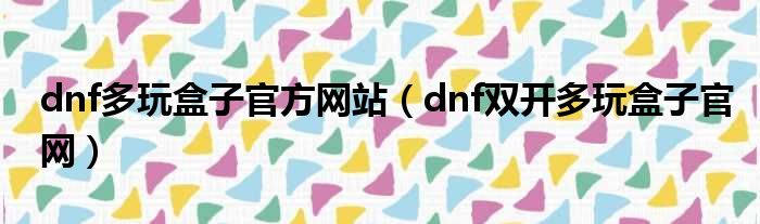 dnf多玩盒子官方网站(dnf双开多玩盒子官网)
