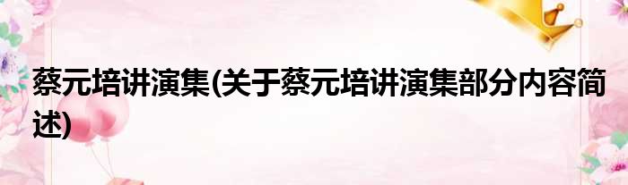 蔡元培讲演集(关于蔡元培讲演集部分内容简述)