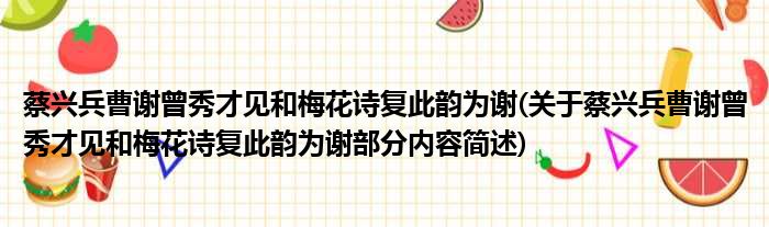 蔡兴兵曹谢曾秀才见和梅花诗复此韵为谢(关于蔡兴兵曹谢曾秀才见和梅花诗复此韵为谢部分内容简述)