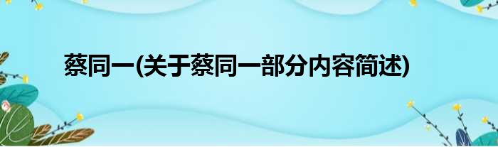 蔡同一(关于蔡同一部分内容简述)