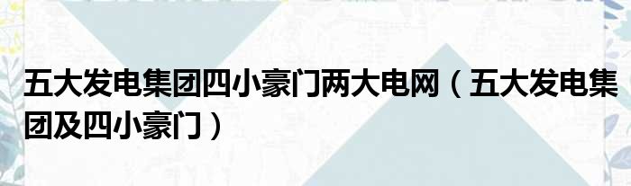 五大发电集团四小豪门两大电网(五大发电集团及四小豪门)