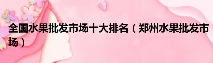全国水果批发市场十大排名(郑州水果批发市场)