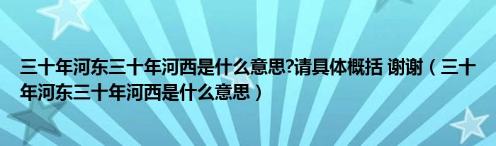 三十年河东三十年河西是什么意思?请具体概括 谢谢(三十年河东三十年河西是什么意思)