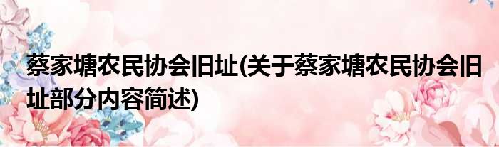 蔡家塘农民协会旧址(关于蔡家塘农民协会旧址部分内容简述)