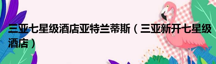 三亚七星级酒店亚特兰蒂斯(三亚新开七星级酒店)
