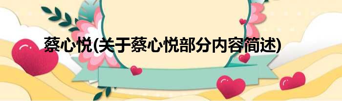 导读 大家好,今天小方来说说一篇关于蔡心悦,关于蔡心悦部分内容简述的文章,那么现在就为大家来简单介绍下,希望对各位小伙伴们有所帮助。