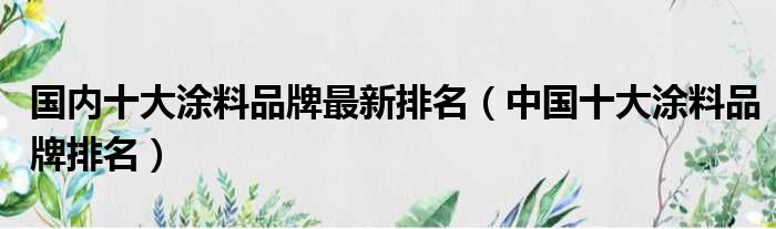 国内十大涂料品牌最新排名(中国十大涂料品牌排名)