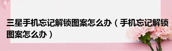 三星手机忘记解锁图案怎么办(手机忘记解锁图案怎么办)