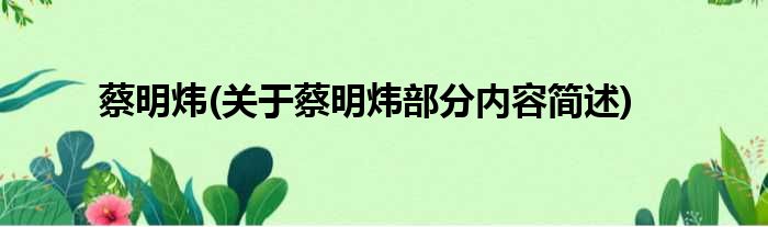 导读 大家好,今天小方来说说一篇关于蔡明炜,关于蔡明炜部分内容简述的文章,那么现在就为大家来简单介绍下,希望对各位小伙伴们有所帮助。