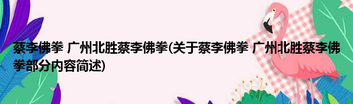 蔡李佛拳 广州北胜蔡李佛拳(关于蔡李佛拳 广州北胜蔡李佛拳部分内容简述)