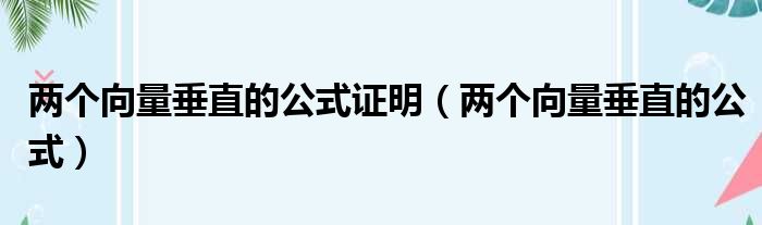 两个向量垂直的公式证明(两个向量垂直的公式)