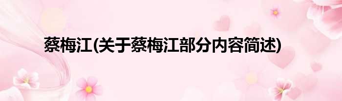 导读 大家好,今天小方来说说一篇关于蔡梅江,关于蔡梅江部分内容简述的文章,那么现在就为大家来简单介绍下,希望对各位小伙伴们有所帮助。